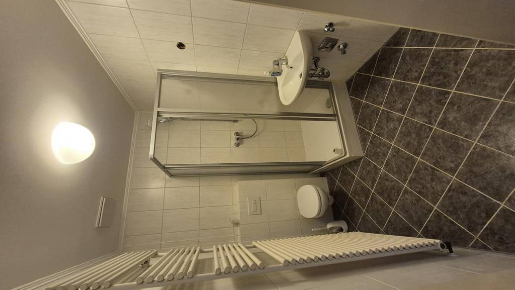 - Badezimmer mit Boden- und Wandfliesen, Dusche