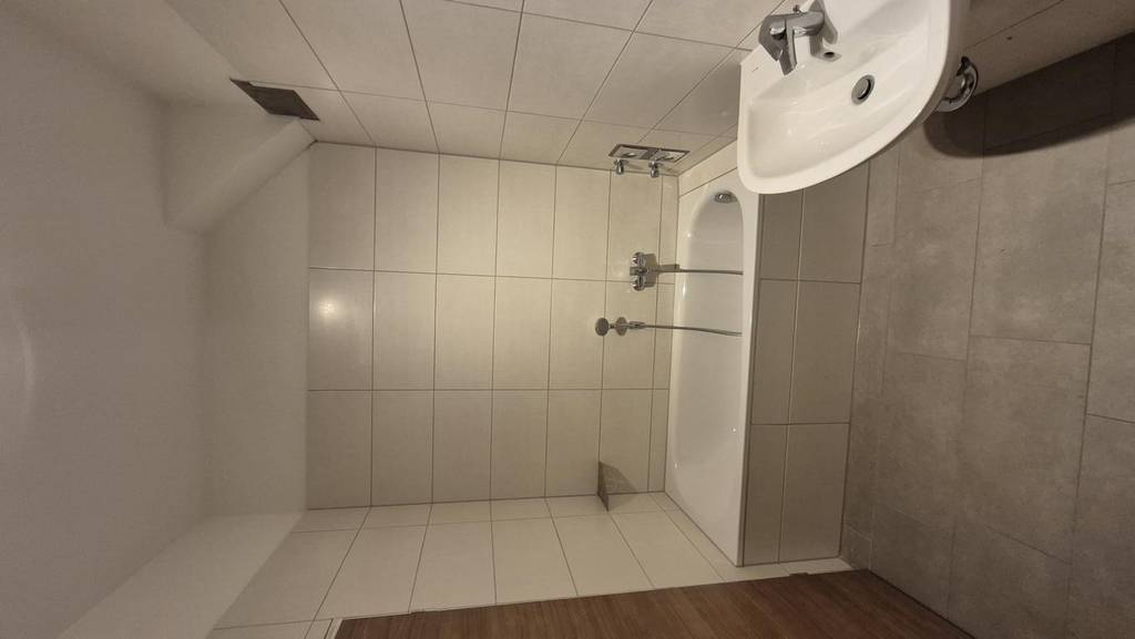 - Badezimmer mit neuen Boden- und Wandfliesen